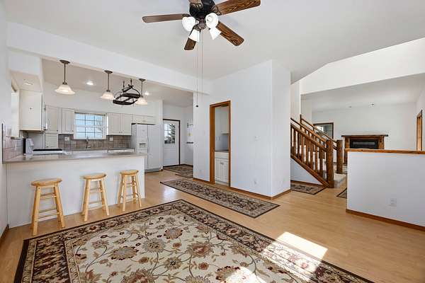 Tucked into a quiet subdivision with no through traffic, the property is framed by mature trees and thoughtfully developed grounds that create a peaceful, private setting. The land features established fruit trees, raised garden beds, and open, usable acreage ideal for small-scale agriculture or animals, supported by a full irrigation system and lawn sprinklers. Outdoor spaces are designed for both relaxation and connection to nature, with a covered wraparound porch capturing sweeping sunset views, a tranquil koi pond, and a hot tub. Direct access to nearby public BLM land expands recreational opportunities, offering endless terrain for hiking, horseback riding, ATV and side-by-side adventures, and motorcycle riding, while the separate living space above the garage provides added flexibility for guests, rental potential, or a home office.