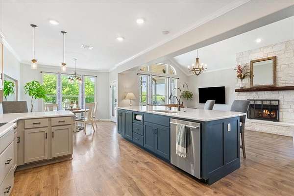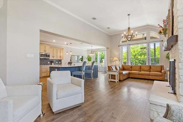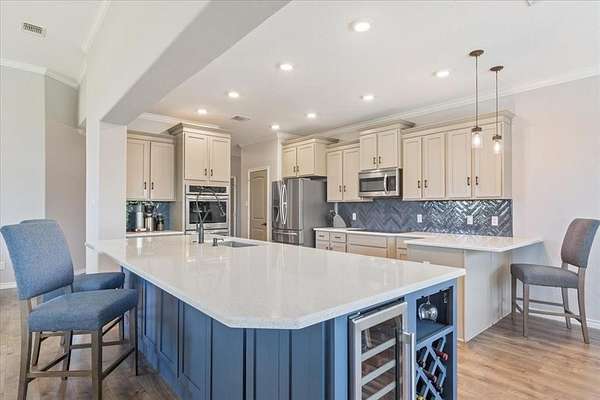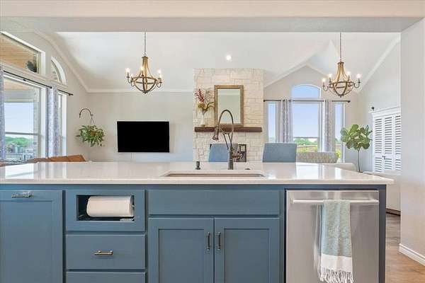 - Built-In Features, Built-In Wine Cooler, Chandelier, Decorative Lighting, Double Vanity, Eat-In Kitchen, Flat Screen Wiring, Granite Counters, High Speed Internet Available, Loft, Open Floorplan, Pantry, Walk-In Closet(s), Wet Bar