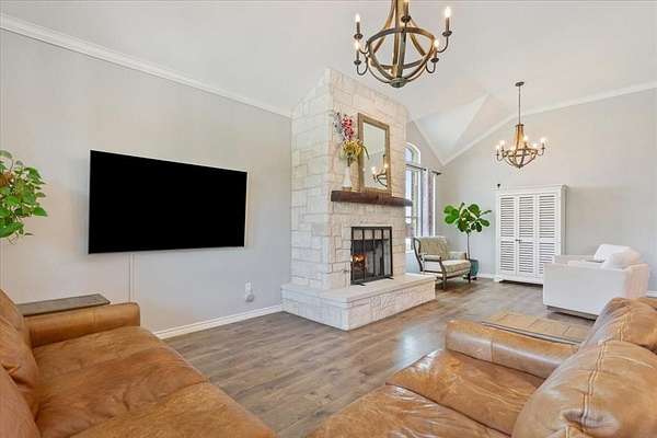 Homes like this don’t come around often, a true neighborhood setting where every property sits on 2+ acres, giving you room to breathe and enjoy your own space. This 4-bed, 3.5-bath home brings together thoughtful design, high-end upgrades, and outdoor living that truly sets it apart. From the moment you walk in, you’ll notice how open, bright, and welcoming it feels — with natural light pouring into the main living area and a gas fireplace creating the perfect place to gather. The kitchen is designed for real life and entertaining, completely open to the living and dining spaces, with custom cabinetry, generous counter space, and a large island where everyone naturally ends up. Whether it’s busy mornings or hosting friends, this space makes it easy. The primary suite is isolated on the main level and is almost double the size you would expect, offering a quiet, private retreat, a spa-like bathroom, and plenty of closet space. The main level also includes 2 more bedrooms, a full bathroom, and a guest half bathroom. Upstairs, you’ll find an additional bedroom plus a dedicated theater room — perfect for movie nights, game days, or just having a fun space to unwind. But what truly makes this home special is what’s waiting outside. The backyard feels like your own private resort, complete with a heated pool and spa, an expansive deck, and a fully equipped outdoor kitchen that’s ready for year-round gatherings. From summer pool days to cozy evenings under the lights, this is a space you’ll never want to leave. The details here matter — mature landscaping, custom lighting, a circle drive for added convenience, plus both an attached 2-car garage and a detached 2-car garage for extra space and flexibility. With upgrades like spray foam insulation, a water softener system, updated HVAC, and a brand new roof in 2025, this home is as efficient as it is beautiful.This isn’t just a home — it’s a lifestyle. A place to relax, entertain, and enjoy every day just a little more.