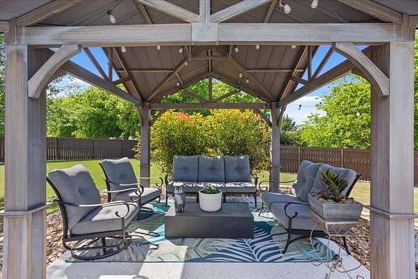 - Attached Grill, Basketball Court, Covered Patio/Porch, Fence, Gas Grill, Lighting, Outdoor Grill, Private Yard, Rain Gutters