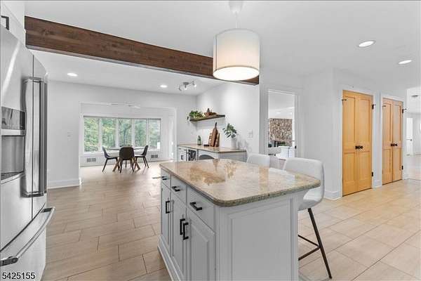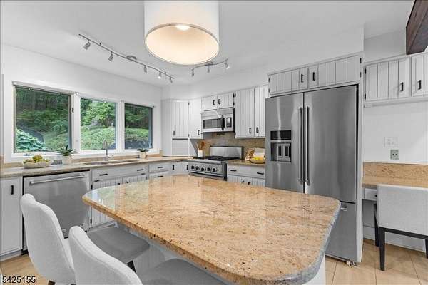 Modern masterpiece located on private 5 acre lot! Enter into a 2-story foyer leading to a skylit great room with FP open to a generously sized formal dining room. A 1st floor bedroom with bath offers a versatile space, work from home in a 1st floor office and enjoy the spacious kitchen with adjoining family room and solarium.The 2nd floor primary suite features a gas FP, cathedral ceiling, deck,16 x16 sitting room, two immense walk-in closets and a stunning nearly new spa like bath. Three additional bedrooms, two newer baths(1 ensuite) and an airy loft complete the second floor. More space is found in the finished walkout with large rec room, kitchenette, newer full bath, music room, craft room and storage. 3- car garage with Tesla charger. Yard offers firepit area,gazebo, and basketball court. New five bedroom septic installed 2026. Two new sets of sliding doors in living room 2026. Superb location on a cul-de- street not far from center of town, shopping, NYC trains and highways.
