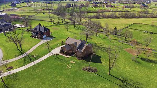 Situated on 2.41 breathtaking acres just minutes from Georgetown, Frankfort and Lexington, 101 Sandpiper Court offers over 5,500 square feet of beautifully appointed living space in a setting that captures the very best of the Bluegrass. Backing to an Elkhorn Creek tributary and located just a mile from Elkhorn Creek itself, this property blends privacy, recreation and natural beauty. The main level features a generously sized kitchen with cherry cabinetry, granite and GE Profile appliances, spacious living and formal dining rooms, an executive-style primary suite, with heated tile floors and a private office complete with its own bar. Upstairs, three well-designed bedrooms and two baths provide ideal guest accommodations. The finished lower level expands the home's versatility with a bar, kitchenette, home theater, abundant storage, a fifth bedroom and full bath - perfect for in-law or extended guest living. Thoughtful upgrades include newer systems, a two-year-old roof, central vacuum, new garage doors, custom closet systems, plantation shutters and three gas fireplaces. Outdoors, this spectacular lot is the true showpiece with views to be enjoyed from the covered porch or lower level patio. The back yard is completed with an expansive garden space, a fire pit and a scenic creek, with the rare opportunity to enjoy acreage living while remaining conveniently close to town. Do not hesitate on this gorgeous home!