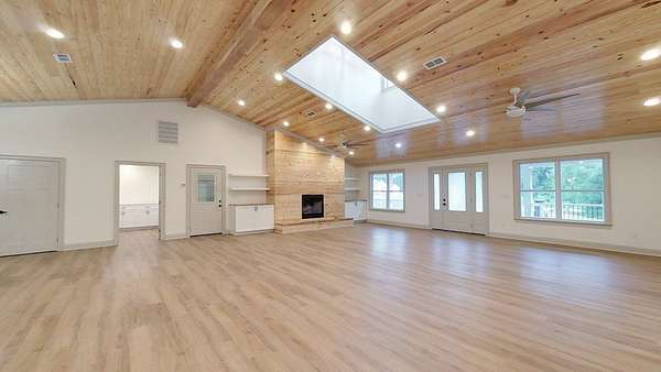 - Beamed, Built-Ins, Ceiling Fan(s), Crown Moldings, Fireplace, Hard Surface Countertops, High, Laundry Room, Light & Airy, Luxury Shower, Master Bath, Master Bedroom Walk-In Closet, Master Suite, Moulding, Newly Painted, Open Floorplan, Programmable Thermostat, Recessed Lighting, Separate Shower, Sheetrock, Shiplap, Skylight(s), Sliding Glass Doors, Walk-In Closets