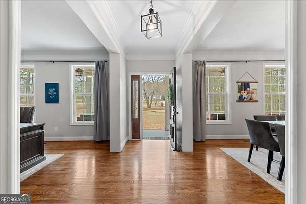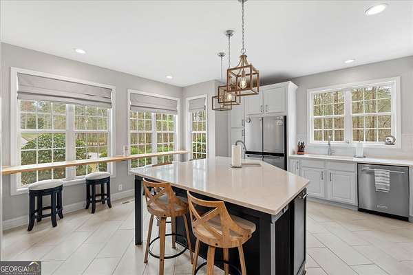 Set on 4 private acres in the Southbend neighborhood, this spacious 3,890 square foot home offers 5 bedrooms, a large bonus room, and 3.5 bathrooms, blending thoughtful updates with the kind of space that's becoming harder to find this close to town. Inside, the updated kitchen serves as the heart of the home, featuring quartz countertops, a custom island, dual sinks including a hands-free faucet, gas range with pot filler, disposal, and a distinctive window bar that brings in natural light and creates a great gathering space for family and guests. The home has been carefully refreshed throughout, including fresh interior paint, brand-new carpet upstairs and in the primary suite, and a new roof installed in February 2026 with transferable warranty. The primary bathroom was updated within the last five years, creating a comfortable and modern retreat. Additional upgrades add both efficiency and convenience, including a tankless gas water heater, gas fireplace with custom mantle, refreshed blown-in insulation, smart lighting, Ecobee smart thermostats, and gigabit-speed internet availability. The garage is also equipped with a 40-amp EV charger for convenient at-home charging. Outside, the 4-acre property offers privacy while still being part of an established neighborhood setting. A 10x20 powered outbuilding with its own electrical panel, roll-up door, shelving, and workbench provides excellent space for a workshop, hobbies, or additional storage. The location keeps you conveniently connected, with downtown Carrollton only 10-15 minutes away, Newnan about 25-30 minutes away, and Atlanta's airport roughly an hour away with less than five miles of interstate travel. If you've been searching for space, updates, and a home that balances privacy with convenience, this Southbend property offers a rare opportunity.