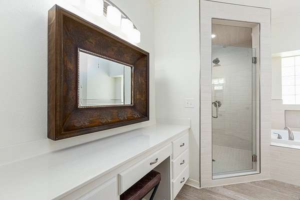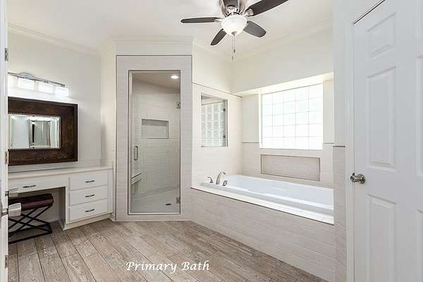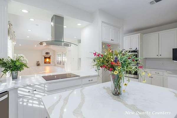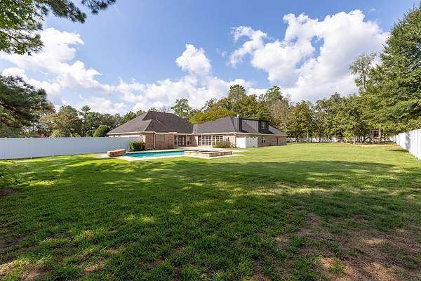 : Located on a beautiful corner lots with 1.6+ acres in the Oak Trace Subdivision, this truly Impressive 4 Bedroom, 4.5 Bath home has so much to offer! The Grand Living Area is Massive with tall ceilings, a cozy wood-burning fireplace, new wood flooring, modern lighting, and tons of natural lighting with a view of the gorgeous pool! The kitchen was just updated with New Quartz countertops that blend perfectly with the the home and new flooring! It features a large Island, tons of counters space, huge walk-in pantry, double ovens, stainless steel appliances, and ample cabinet space. You'll also love the second living area with a gas fireplace, formal dining room, crown molding, boxed ceilings, and a very spacious upstairs Bonus Room with its own Full Bath. Outside, enjoy your own private retreat with mature landscaping, a heated Gunite Pool, Hot Tub with a waterfall, and a beautiful vinyl privacy fence. This property also includes a double garage and a climate-controlled storage room.