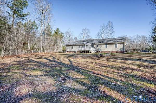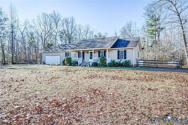 THIS 3 BEDROOM 2 BATH RANCH HOME ON 8.5 ACRES IN KING WILLIAM COUNTY IS READY FOR NEW OWNERS! This home features a family room with gas fireplace, eat-in kitchen with tons of cabinetry, bay window and a 5X2 pantry and a laundry room with storage that provides access to the 2 car garage. The primary bedroom with walk in closet and attached bath (double vanity with storage, toilet, tub/shower) and bedrooms 2 and 3 both with ample closet space and the full hall bath (single vanity with storage, toilet, tub/shower) complete the space. The 25X5 front porch and the 14X14 deck are both perfect spots for a coffee, relaxing time or entertaining. The detached storage shed has extra space for yard equipment or outdoor toys! Located on 8.5 wooded acres - perfect for peace and quiet! SCHEDULE YOUR TOUR TODAY!