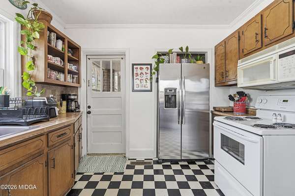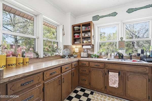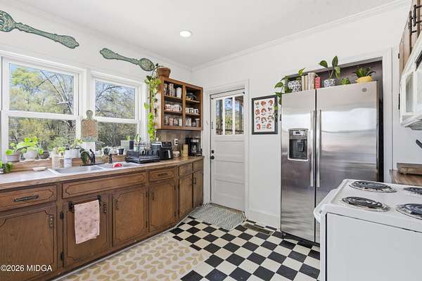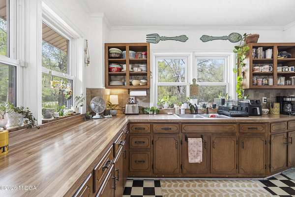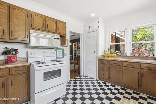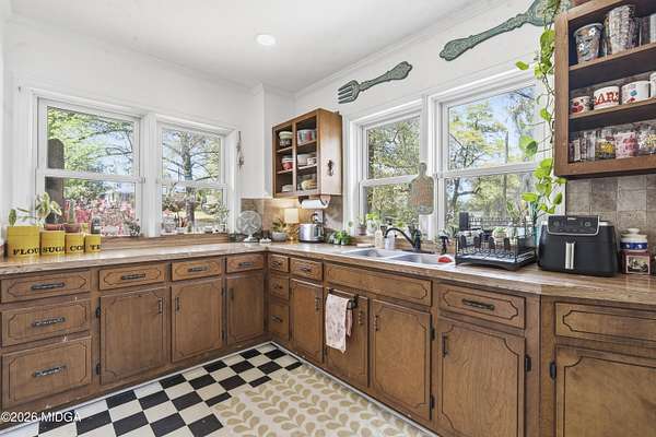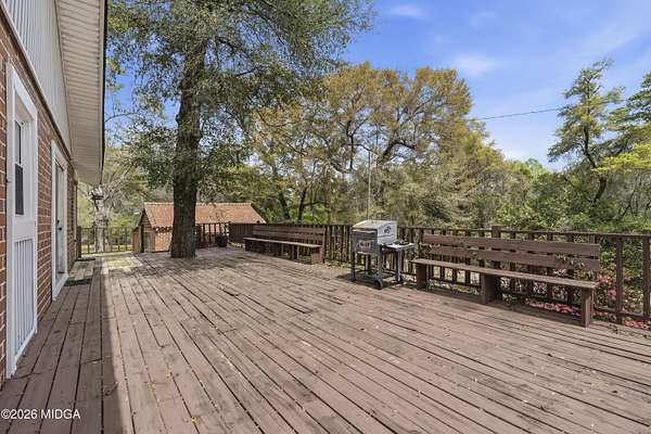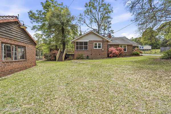 Not your typical cookie-cutter listing. This solid brick home is placed perfectly on a 1.52 acre lot tucked behind blooming azaleas and mature trees that give the entire property a sense of calm the moment you arrive. It feels private, grounded, and a little bit like you've stumbled onto something special. Inside, the original hardwood floors prove that the materials used to build this home were made to last. The gorgeous coloring in the wood planks is the kind of patina that only comes with time. Natural light moves easily from room to room, highlighting cozy corners, built-ins, and spaces that feel collected rather than staged. There's a lived-in charm here that's hard to replicate and even harder to find intact. The kitchen keeps that same personality with adorable checkered flooring, plenty of cabinet space, and views of the surrounding greenery. Out back is where this property really leaves an impression. The large deck built around a mature shade tree is certainly something that you do not see every day! And with a detached shop in the backyard, you've got the perfect spot for storage or weekend hobbies. Schedule your showing today, and come check it out!