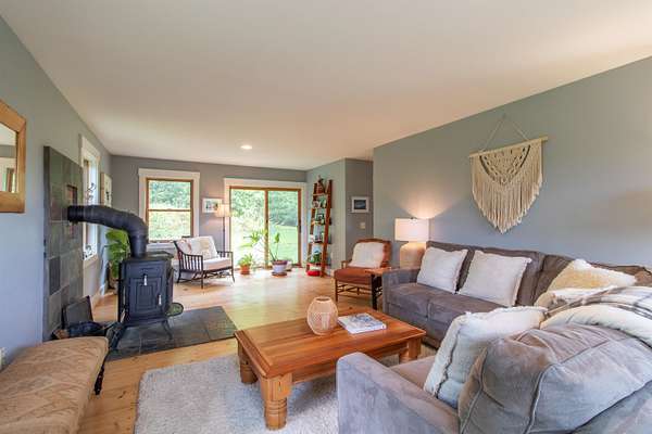 This is a great family home with 4 levels, which includes the finished walk-out basement, offering great space for family and friends. Two large rooms on the 3rd level work for bedrooms, family room, offices or whatever your needs may be. The floors are carpeted so it is quiet. The 2nd level has a wonderful primary suite with large walk-in closet that offers natural light with two windows. There are two other bedrooms that share a bath, all with wood floors but the baths have tile floors and cast iron tubs with tile surrounds. The main level has a beautiful, recently upgraded kitchen with granite counter tops, stainless appliances, and white cabinets, giving it a very light and spacious feel. The main floor softwood floors have just been refinished. The dining room is quite open to the kitchen and has sliders to a lovely covered porch to enjoy the views of the countryside. The large living room has a hearth with a VT castings wood stove and sliders to the backyard. Go down a level to the finished basement where there is a great storage area as well as a finished family room, bonus room with 3/4 bath All heated with a renai direct vent heater. The house is outfitted with a standby Generator as well and is Located midway between Lyndonville and St. Johnsbury, offering you the ease of being where you need to be in minutes and very easy access to I93. Elementary school choice currently