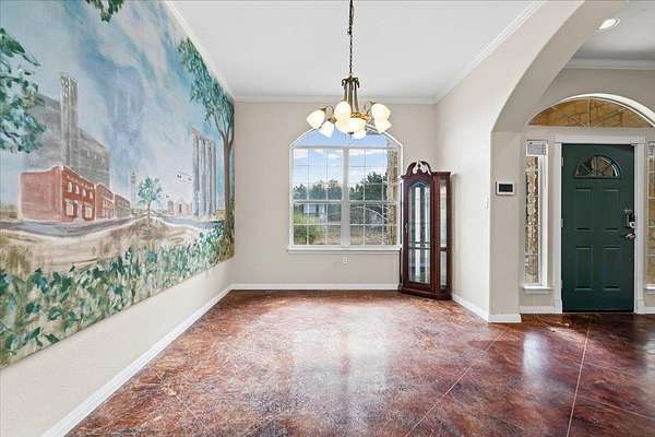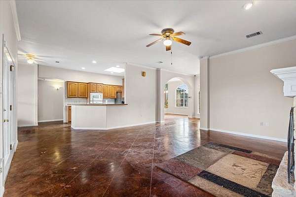 - Bookcases, Breakfast Bar, Built-In Features, Ceiling Fan(s), Crown Molding, Double Vanity, Eat-In Kitchen, Entrance Foyer, Multiple Dining Areas, Open Floorplan, Primary Bedroom On Main, Recessed Lighting