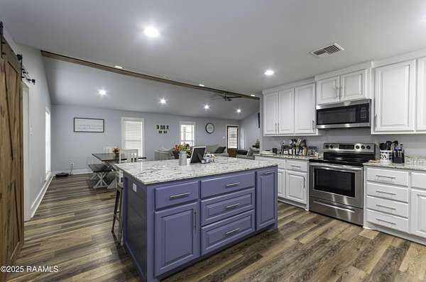 - Attic Access, Built-In Features, Built-Ins, Granite Counters, Kitchen Island, Separate Shower, Walk-In Closet(s)