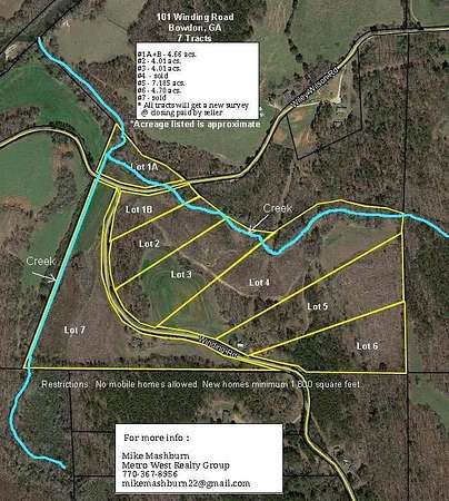 Est $1,107/moLot 1A & Lot 1B and Lot 2 only. See plat, and documentation. All tracts have beautiful creek frontage on backside of each tract. *Tract size is approximate and will be adjusted once approved surveyor draws final plat. * Manufactured and mobile homes are accepted as long as they are new homes