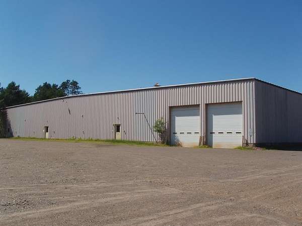 (090/DW) Park Falls Commercial/Industrial use 150x200' steel frame building with concrete floor. Large open area in back, 2 loading docks with overhead doors on the back side of the building with a parking pad outside. The front of the building has a finished reception area, 2 offices, breakroom and bathroom. There is also a breakroom and bathroom in back. Built in 1990 the building has an air exchanger, forced air unit and has 480 volt, 3-phase electric service. The property is serviced by municipal water and sewer. Located on 17+/- acres with a small creek meandering through the property. There is plenty of parking area on the side and back. Side street entrance and exit. There is also a 30x30' open ended metal storage building on the property with a concrete floor. See the many possibilities as to how the building could be utilized. $329,900.