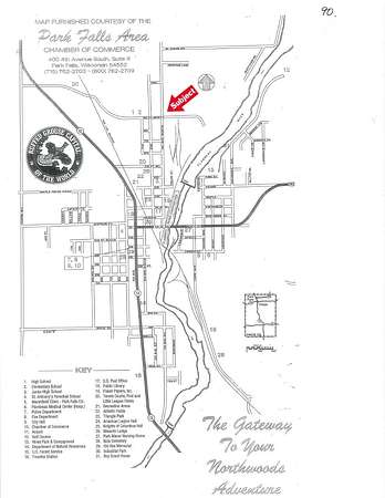 In Park Falls take Hwy. 13 to 9th St. North to 1st Ave. Cross 1st Ave. Property is located on the corner of 1st Ave. and 9th St. on east side of 1st Ave.