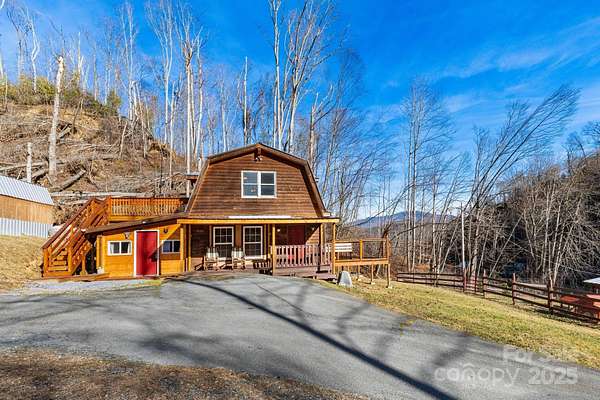Tucked into the peaceful beauty of Shootout Mountain, this turn-key mountain sanctuary offers a rare blend of refined seclusion, natural beauty, and proven income potential. The property features three successful rental units across two thoughtfully designed structures-a charming standalone cabin and a versatile bardominium with two separate units that can easily convert to a single whole-house rental. Fully furnished and STR-ready, each building is equipped with its own extra-large propane tank, Starlink internet, and backup power, including a whole-house generator for the barndominium and an additional generator for the cabin. The cabin alone generates $1,500-$3,000 per month, with consistent long-term demand from Penland School of Craft students, providing reliable off-season income. The land is as functional as it is beautiful, offering a flowing creek along the property line, long-range eastern mountain views, a 200-foot well with excellent flow, and multiple improvements including a detached carport, workshop, storage shed with loft, fenced animal areas, and chicken coop. Meticulously maintained with established service contracts, this private mountain estate presents a rare opportunity for investors or lifestyle buyers seeking immediate cash flow, operational resilience, and a timeless mountain setting. Assumable Loan Opportunity: Potential for the buyer to assume the seller's loan at its current 3.5% interest rate! See Features Sheet for full details.