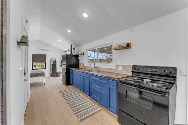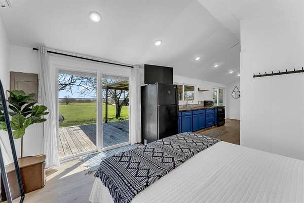From Llano take TX-29 West. Turn right on RR 2241 toward Tow. Continue through Tow, then turn left onto CR 221. Stay on CR 221 toward the lake. Property is on the right near the waterfront.