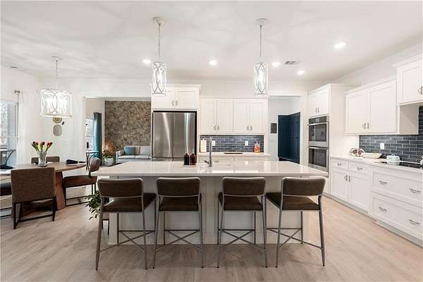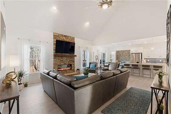 Welcome to 1010 Darby Rd in Ball Ground, GA - a stunning luxury estate on over 2 unrestricted acres offering the perfect blend of high-end finishes, space, and flexibility with NO HOA. This immaculate home features 5 oversized bedrooms, 4 full bathrooms and 1 half bath, and a thoughtfully designed layout that combines elegance with everyday functionality. The spacious kitchen is truly the heart of the home, showcasing a large island, pot filler, and an expansive breakfast area large enough to gather the whole family, along with a separate formal dining room for entertaining. Designed for both beauty and function, the kitchen offers soft-close cabinetry, oversized drawers for easy organization, and a walk-in pantry with custom shelving. Just off the kitchen, you'll find a flex space ideal for a second family room, playroom, office, or media space - giving you endless options to fit your lifestyle. The family room impresses with soaring ceilings and a beautiful stone fireplace, creating a warm yet grand atmosphere. The owner's suite on the main level offers comfort and convenience, complete with a spacious walk-in closet featuring separate his-and-her sides for ultimate organization. Coming in from the driveway, you'll love the fantastic mudroom - perfectly designed to keep everyday mess contained and organized right at the door. Step outside to enjoy upgraded decking and a screened porch, perfect for relaxing or entertaining while overlooking your private acreage. The finished basement is truly a showstopper, designed for entertaining with out-of-this-world gathering spaces, featuring an electric fireplace, custom cabinetry, and a wine refrigerator. A private in-law suite makes it ideal for guests or multi-generational living, and a sidewalk from the driveway to the backyard provides a private entrance option for added flexibility and convenience. You'll also appreciate the abundant storage throughout the home. Situated in a prime Ball Ground location, this home is zoned for top-rated schools: Macedonia Elementary, Creekland Middle, and Creekview High School, and is just minutes from downtown Ball Ground and Canton, offering dining, shopping, and entertainment. With over 2 acres of unrestricted land, you have the freedom to create your dream outdoor space - whether that's a pool, workshop, or simply enjoying privacy and nature. Luxury. Space. Location. No HOA. Immaculate condition. This is a rare opportunity you don't want to miss.