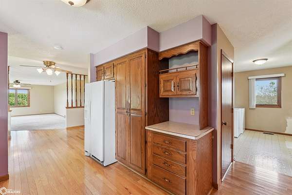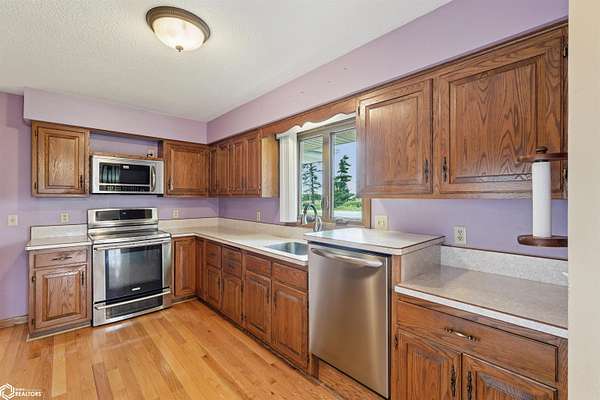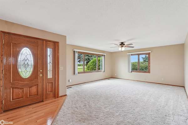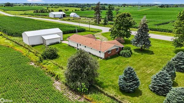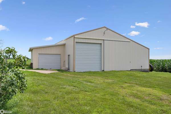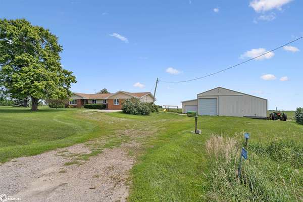 ACREAGE ALERT! Spacious ranch home with semi-open floor plan has much to offer! Located on 4 acres along a hard surface road you're sure to be impressed by this home's gorgeous curb appeal. Walk inside the home and the first thing you'll notice are the timeless hardwood floors. A large living room is a great spot to enjoy time with family and friends. This leads into a den area before the kitchen area with plenty of cabinets and stainless steel appliances. A formal living room is adjacent to the kitchen as well as a mud/laundry area with more storage and a utility sink. The master bedroom and second bedrooms are separated by a full bathroom. To finish out the main level is a third main floor bedroom and an attached garage. The basement offers a blank slate for additional square footage in the future - plumbing present for second bathroom. Outside is an awesome outbuilding offering a garage space, a large 56x28 shop space and a 14x23 lean-to to store equipment. This property is in Mahaska County and consists of two parcels. Interior photos have been edited to remove personal property.