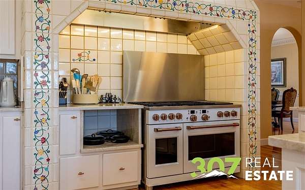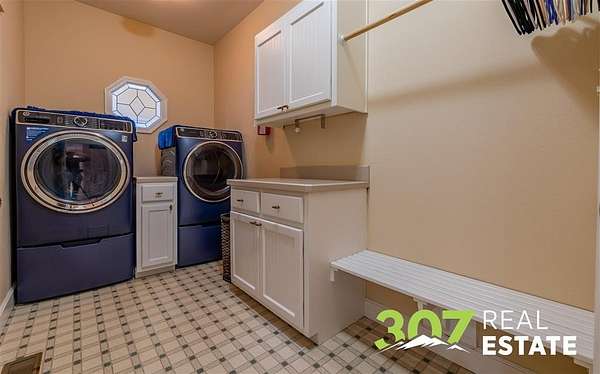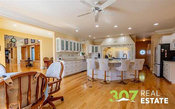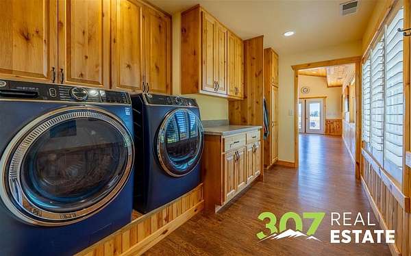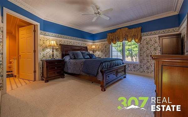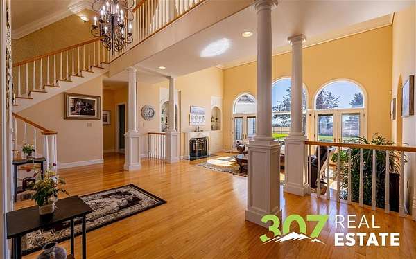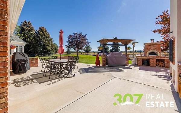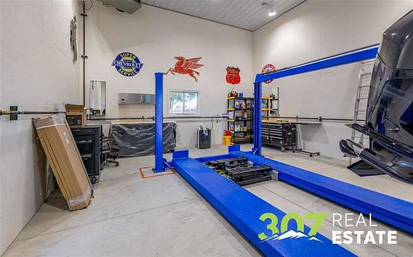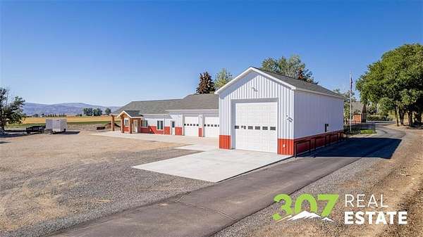 Discover the ultimate Wyoming retreat with this premier property on 18.13 pristine acres, ideally located between the Big Horn Mountains, Yellowstone National Park, and the commanding Beartooth Range. Offering both luxury and functionality, this estate blends custom craftsmanship with thoughtful design. The 6,025 sq. ft. main home features 4 spacious bedrooms, 6 bathrooms, and a 4-car garage. Every detail has been carefully curated, from the immaculate hardwood floors to the bright, open living spaces. A greenhouse attached to the home allows you to start your garden early each season, while the outdoor entertaining area is a dream--complete with a firepit, wood-fired pizza oven, and a built-in gas line for the grill. A true standout is the 4,000 sq. ft. shop with an attached guest quarters. The guest home includes 1 bedroom and 1 bathroom with approximately 1,500 sq. ft. of finished living space, perfect for visitors or extended stays. The remaining shop area is designed for serious work and storage, offering heated bays, three 10-ft doors, and a 14-ft RV-height door--plenty of room for equipment, vehicles, and recreational toys. The property's grounds are as meticulously maintained as the interiors, showcasing lush lawns and immaculate landscaping that reflect the pride of ownership. This is truly a one-of-a-kind custom Wyoming estate--offering unparalleled space, comfort, and the opportunity to embrace the region's adventurous lifestyle while enjoying every modern amenity