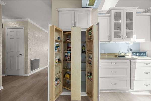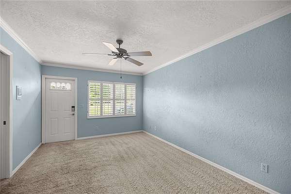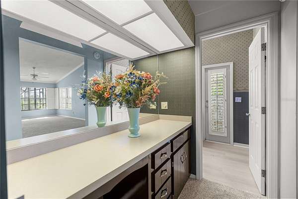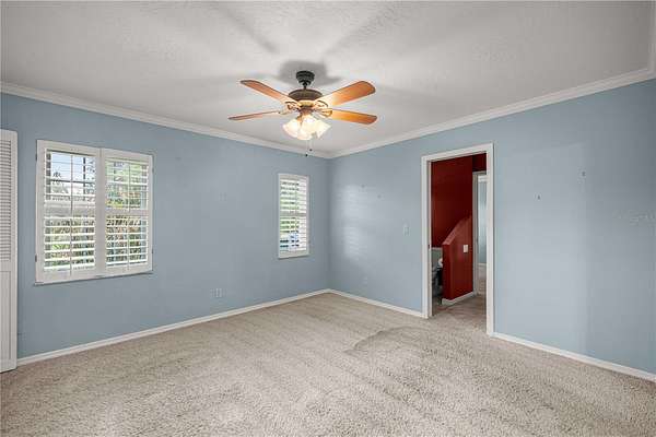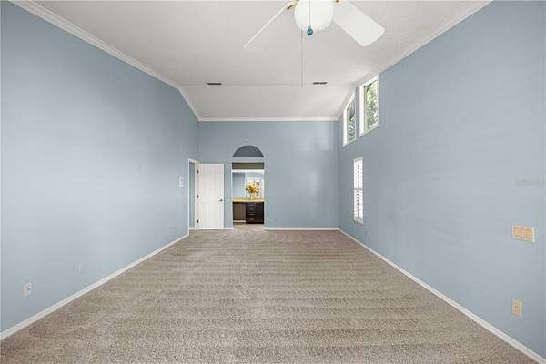 - Ceiling Fans(s), Eat-In Kitchen, Living Room/Dining Room Combo, Primary Bedroom Upstairs, Solid Surface Counters, Split Bedroom, Stone Counters, Vaulted Ceiling(s), Walk-In Closet(s), Window Treatments