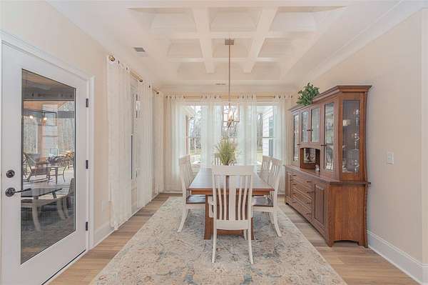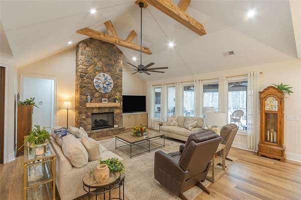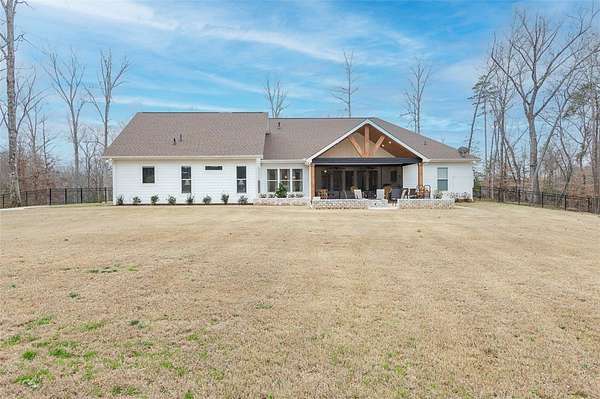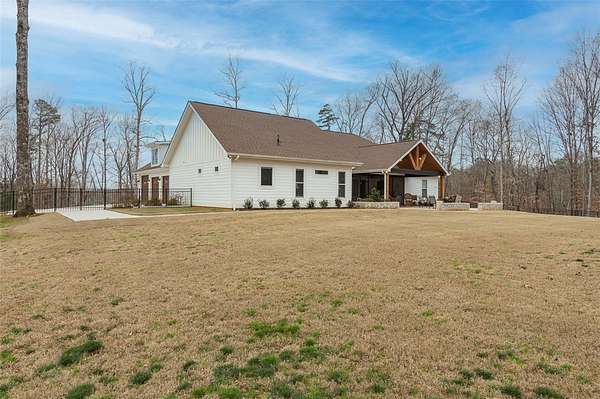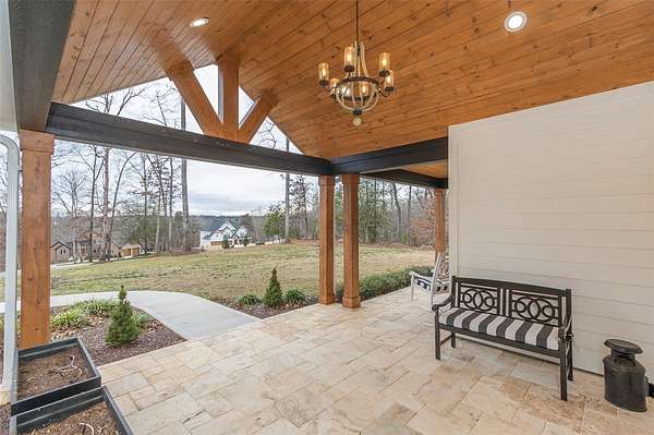Single level traditional styled custom built home situated on 2.5 meticulous and private acres featuring seasonal views of Lake Hartwell. Local builder has provided exquisite detailing in this craftsman inspired home. Entry at the stamped concrete driveway leads to ample off street parking and side entry 3 car garage; complete with easy access side yard door. Hardscape pathway leads to front entrance covered porch with etched flooring and wood enhanced ceiling. Nature lovers will enjoy strolling around the landscaped grounds featuring black iron styled fencing, covered back porch with woodplank styled concrete flooring and soaring wood trimmed ceiling and beams. Step out onto the sunlite paver patio w/ firepit area. Beautiful mature trees surround this serene property on all 3 sides. Stepping into the foyer one will notice all the custom details throughout the main living areas. Open style is perfect for entertaining with the soaring ceiling wood beamed living room finished w/ stone enhanced gas log fireplace. Elegantly detailed kitchen with its upgraded stainless appliances: 6 burner gas stove with hooded vent, wall oven and microwave, sink with instant hot water and fabulous walk in storage pantry. Enjoy food prep as you chat w/ people whether seated at quartz topped bar or in the adjourning dining area. Mud room styled transition area leads to 1/2 bathroom and flows intto the oversized walkin laundry room with sink and an abundance of cabinet storage. WOW......will be the reaction to the primary bedroom ensuite. Warm carpeted flooring, multitude of windows, trey ceiling as well as professionally styled walk in closet. Tiled bathroom retreat with double sinked vanity area, sit down mirrored make up station and tiled oversized walk in shower. Glass doored office/flex room with ceiling and wall detailed trim. Popular and private split bedroom plan each sharing the spa like full bathroom; double sinks, doored toilet area and magnificent large walk in shower. One bedroom has its own personal access to the bathroom. Main living areas are finished with easy to maintain hard flooring either tile or LVP. Three car garage interior is amply sized for allowing yard equipment storage and cabinetry space. Topsail Bay is a lake front community with low annual HOA fee, neighborhood restrictions and is a short drive to public boat launches and water enjoyment. Close by is Clemson University and a multitude of small towns with which to enjoy restaurants and social ammenities.