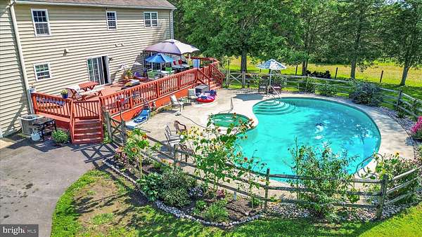 Multi Generational living at its absolute best!!! This is a one of a kind home in beautiful Bedminster, Bucks County, located in the highly desirable Pennridge School District. This amazing 5 Bedroom, 3 Full and 1 Half bath home is set on 3 open, picturesque acres. A charming covered front porch great for relaxing and enjoying the views, invites you inside, where you'll find spacious living areas filled with natural light. The heart of the home flows seamlessly to a large deck overlooking an in ground pool, ideal for entertaining and enjoying the beautiful backyard views. Car enthusiasts or hobbyists will enjoy the 2 car garage, plus an additional detached 2 car garage, providing abundant parking, workshop space, or storage space. There also is additional attic storage space above the second floor with walk up step access. One of the stand out features is the fully equipped Family/in-law suite, complete with its own private exterior entrance, (There is a stair glide chair if needed) a full kitchen, laundry area, living space, and bedroom with full bath - perfect for multi-generational living or guests. With acreage to enjoy, in-ground pool/spa, flexible living spaces, and a prime Bedminster location, this property offers exceptional value and a lifestyle that is hard to find. Don't miss this unique opportunity to own a one of a kind home in Bucks County.
