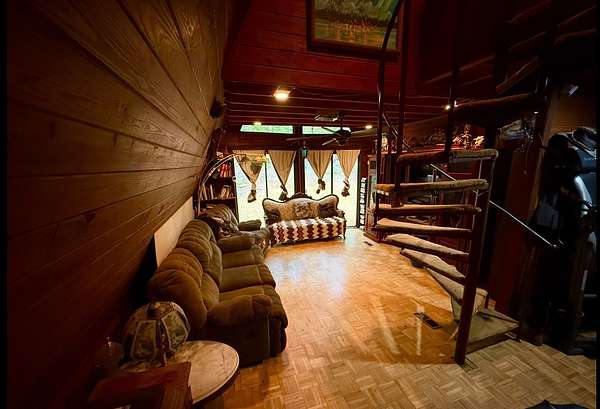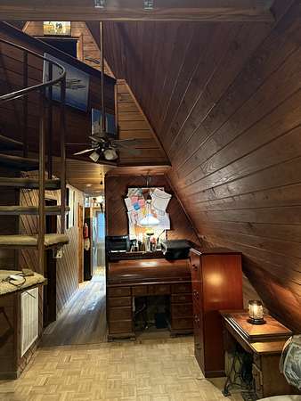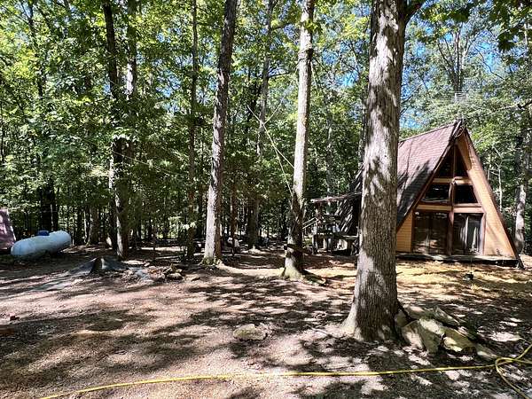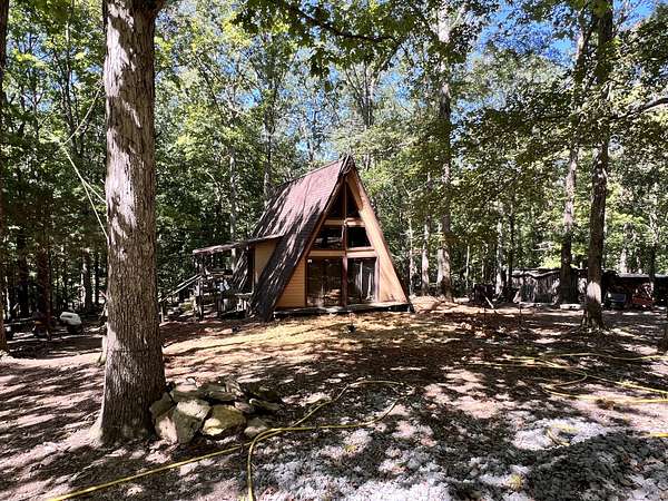 Here is a A Frame cabin setting on 7+ acres with a seasonal creek setting at the end of a cul-de-sac. This home has a lot of potential, and opportunities for you to put your personal touches on some projects on the property, seller has updated the plumbing to pex, as well as flooring, bathroom, light fixtures, etc Has a walk out basement, and fenced for horses on the property. There is even an old smokehouse on the property. Great for hunting, or making your very own retreat. This property is close Fort Campbell Army Base, Clarksville, TN, Dickson, TN, Cumberland River, boating and fun. Seller will need 7 days after closing for possession because of livestock.