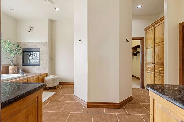- Ceramic Tile Flooring, Hardwood Floors, Pantry, Solid Surface Countertop, Some Carpeting
