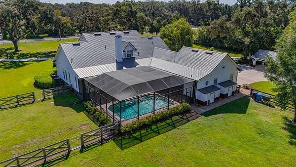 Welcome to your private 5.77-acre paradise -- the perfect blend of peace, privacy, and practicality! FISHHAWK VICINITY - YOU CAN HAVE IT ALL! --with NO HOA, NO CDD, and located in a top-rated school district! This impressive property boasts nearly 4,000 SqFt of living space in the beautifully updated 5-bed, 4.5-bath main home, PLUS an additional 2,400 SqFt in a fully insulated and air-conditioned 40x60 metal building with 4 garage bays--perfect for a workshop, home business, storage, or guest space. Unforgettable Curb appeal stuns with grand oak trees and a circular drive, leading to a home filled with over $350K in recent upgrades, including a 2022 metal roof, 2023 well + saltwater pool system, and 2024 Generator Shed with Foundations for your Generator and Gas Tank / Generator Gas/Propane with Electric House Panel to switch to Off-Grid-Mode. Inside, enjoy an open-concept layout with formal living and dining rooms, a cozy electric fireplace, and a chef's dream kitchen featuring GE Cafe appliances, oversized island, white shaker cabinetry, a wine/coffee bar, and endless storage. The split-plan layout offers a luxurious primary suite on one side, two additional main-floor bedrooms sharing a renovated bath, and two more bedrooms with full bath upstairs--plus walk-in attic storage. Outside, relax on the massive covered/screened lanai overlooking your private saltwater pool and beyond, a fully fenced backyard. Need space for toys or tools? The detached 60 X 40 metal building includes 4 bay doors, RV hookups, a full bath, screened lanai, and A/C. Additional features: 2-car attached garage + 2-car carport (2025), smart home tech, security system, 10-zone irrigation, and pet-safe fencing. With no deed restrictions, there's plenty of room for your RV, boat, animals, hobbies, or business gear. All of this just 30 minutes to Tampa or Lakeland, and minutes to FishHawk, Plant City, Brandon, and top-tier shopping. BRING YOUR TOYS & ANIMALS - ATTENTION: Small Business Owners, Car Collectors, and Equestrian Enthusiasts...Dream Estate Alert! Don't miss this rare opportunity--schedule your private tour today!
