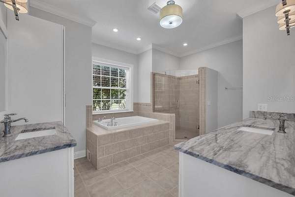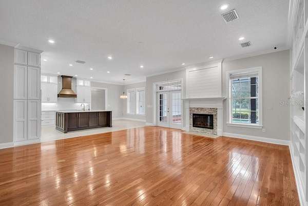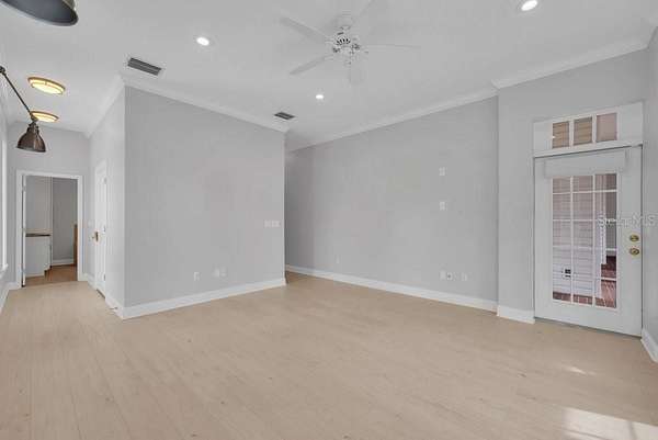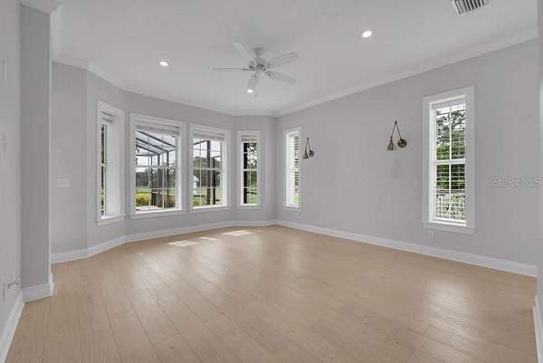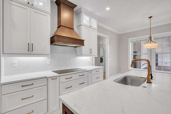 - Attic Ventilator, Built-In Features, Ceiling Fans(s), Crown Molding, Eat-In Kitchen, High Ceilings, Kitchen/Family Room Combo, Open Floorplan, Primary Bedroom Main Floor, Stone Counters, Thermostat, Walk-In Closet(s), Window Treatments