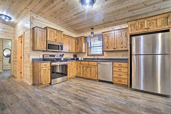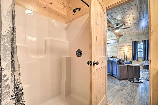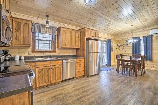 Tucked away in the heart of the Hocking Hills region, this stunning 2023-built cabin offers the perfect blend of modern comfort and peaceful wooded surroundings. Situated on 3.3488 private acres, the property is thoughtfully designed for both relaxation and strong short-term rental performance. Inside, the cabin features 2 bedrooms and 2 full bathrooms with an open-concept main living space highlighted by warm wood finishes, vaulted ceilings, and large windows that bring the outdoors in. The living room centers around a cozy fireplace, creating an inviting space for guests to gather after a day exploring the trails. The spacious kitchen offers stainless steel appliances, abundant cabinetry, and a dining area that opens to the outdoor space--perfect for hosting guests or enjoying quiet mornings in the woods. The finished basement recreation room adds additional entertainment space, making the cabin ideal for groups and increasing guest appeal for short-term rentals. Outside, guests can unwind in multiple outdoor gathering areas, including a private hot tub, a dedicated fire pit area surrounded by Adirondack seating, and scenic wooded views that provide a true Hocking Hills getaway experience. This cabin is already a proven income-producing property, generating $56,909 in total revenue for 2025. The home is professionally managed, and the current management company can remain in place for a seamless transition to the next owner. Whether you're looking to expand your short-term rental portfolio, invest in a turnkey Hocking Hills Airbnb, or own a private getaway that pays for itself, this property checks every box.