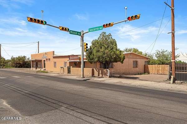 Location, location, location! Almost one acre (.98 acre) on busy Socorro Road with great traffic and strong commercial potential. Property includes commercial zoning at 10108 Socorro Rd and a 2,800 sq. ft. residence at 10104 Socorro Rd, sold together. The commercial building offers excellent visibility and flexible use; with 2079 sqft which make the total of 5843 sq. ft. . Ideal for many business types or future development. The home features formal living and dining areas, a large playroom, space for an office or hobby room, a spacious kitchen with breakfast area, three bedrooms, and one full bath. Flooring includes hardwood, tile, and vinyl. Exterior includes a workshop/garage and large yard. Located on the historic Mission Trail near Socorro Mission and local landmarks. Drive by and call listing agent for appointment.