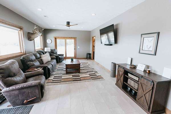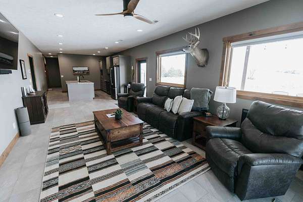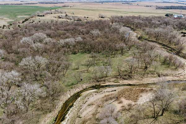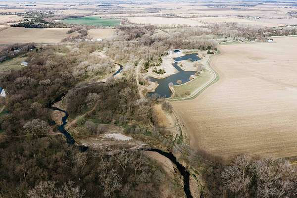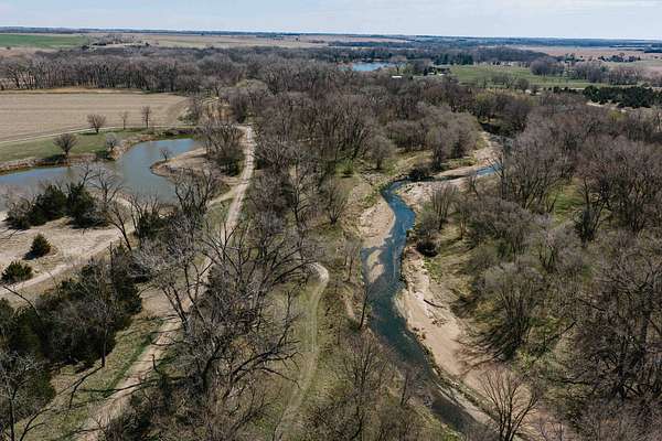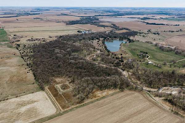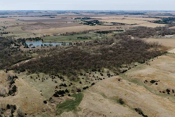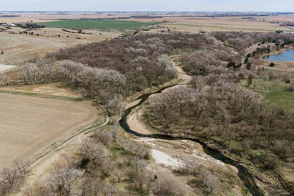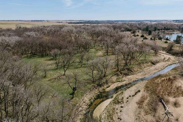 Outdoor enthusiasts, anglers, and hunters - your search for the ultimate "everything" property ends here. Tucked away just eleven miles south of Hastings, Nebraska, lies a secluded personal retreat that checks every box on your list. Located just off Highway 281 on a private drive, this property offers the perfect balance: the convenience of pavement yet very secluded. Stretching along the entire southern boundary is a full mile of the Little Blue River, giving the property a beautiful setting to get away from it all! The heart of the property is a nearly new, modern two-bedroom, two-bath cabin overlooking your own private fully stocked pond. Rock tiered landscaping with steps take you straight from the cabin down to the dock. This isn't just any pond - it's been carefully dredged and stocked for high-caliber fishing. It even features its own private well to maintain water levels and keep the surface open all winter long. Inside, the cabin is sleek and open-concept, featuring a spacious kitchen island and an attached garage for your vehicles and UTVs. For peace of mind, there's a concrete vaulted safe room - providing both storm protection and secure storage for your valuables. But the real magic is in the land itself. The entire property is fully accessible, thanks to a network of trails carved through the timber. These paths lead you directly to established clover food plots and strategically placed deer blinds, all carefully developed to make the most of the land's natural corridors. Whether it's deer, wild turkey, or waterfowl, the wildlife here is abundant. This is a rare find for the region. Whether you want the full acreage or a smaller fifty-acre tract including the cabin and pond, the possibilities are yours. The cabin was even designed to accommodate a future addition, with a second homesite available if you're looking to build more. Don't let this one slip away. Private tours are available for pre-approved buyers by appointment only.