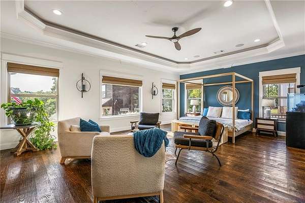 - Bathroom x 5, Bedroom x 5, Bonus Room, Exercise Room, Library, Living Room, Media Room, Office, Sauna