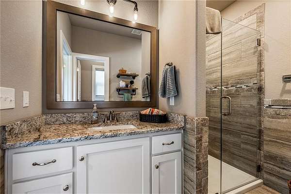 - Attic Storage, Blinds, Built-Ins, Cathedral Ceiling, Ceiling Fans, Central Vacuum, Eat-in-Kitchen, Granite Counters, Ice Maker Connection, Led Lighting, Pantry, Programmable Thermostat, Smoke Detector, Split Floor Plan, Walk-In Closets, Wet Bar, Wired For Sound