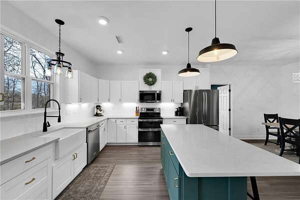 Beautiful home with 5.66 unrestricted acres only one minute from Beaver Lake and 10 minutes from downtown Rogers. Home has 4-bedrooms and an office with a beautiful open-format living area/kitchen. Well built and impeccably maintained, this property also includes a new 40' x 75' shop (15' covered patio), complete with its own 200-amp service and two 30-amp RV hookups on site and plumbed for full bath. Ideal for hobbyists, boat owners, RV enthusiasts, hunters, etc. There are two boat landings on Beaver Lake just minutes away. Truly a rare find that is secluded and blends city convenience and rural freedom.