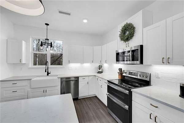 - Attic Storage, Blinds, Cathedral Ceiling, Energy Star Appliances, Led Lighting, Pantry, Programmable Thermostat, Quartz Counters, Smoke Detector, Walk-In Closets