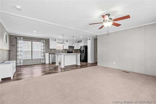 Welcome to peaceful country living in Pekin! Situated on approximately 1.93 acres, this spacious 2021 Clayton Homes double-wide offers the perfect blend of modern comfort and room to roam. Featuring 4 bedrooms and 2 full bathrooms, this home boasts an open-concept layout ideal for both everyday living and entertaining. The large kitchen is a true centerpiece with a stylish island, ample cabinetry, and seamless flow into the main living areas. A separate family room provides additional space for relaxing, hosting, or creating a cozy retreat. The desirable split-bedroom floor plan offers privacy for the primary suite, while the additional bedrooms are generously sized. You’ll also appreciate the functional laundry room with convenient back door access—perfect for busy households and easy outdoor entry. Step outside and enjoy the expansive yard, complete with a deck for outdoor gatherings and a shed for extra storage. With approximately 1,904 square feet of living space, this home delivers both comfort and versatility in a beautiful rural setting. Don’t miss your opportunity to own a newer home on acreage—schedule your showing today! Square footage is estimated; if critical, buyers should verify.