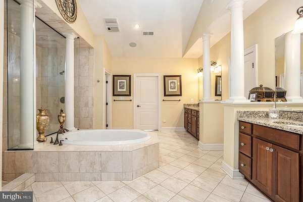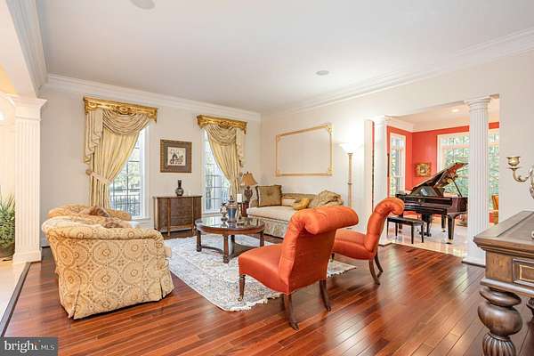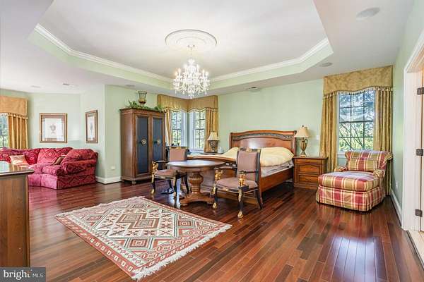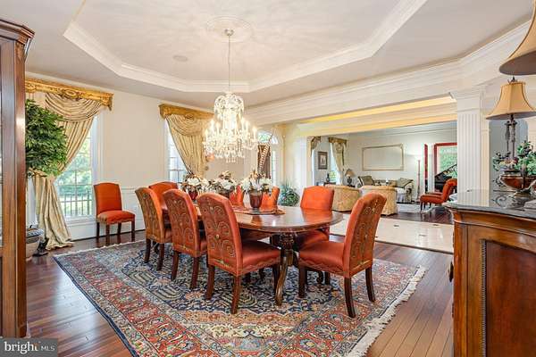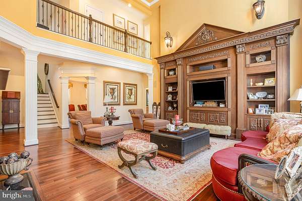- Bar, Built-Ins, Carpet, Crown Moldings, Curved Staircase, Dining Area, Double/Dual Staircase, Eat-In Kitchen, Family Room Off Kitchen, Formal/Separate Dining Room, Gourmet Kitchen, Island Kitchen, Pantry, Primary Bath(s), Recessed Lighting, Soaking Tub Bathroom, Sound System, Stall Shower Bathroom, Upgraded Countertops, Wainscotting, Walk-In Closet(s), Water Treat System, Wet/Dry Bar, Wood Floors