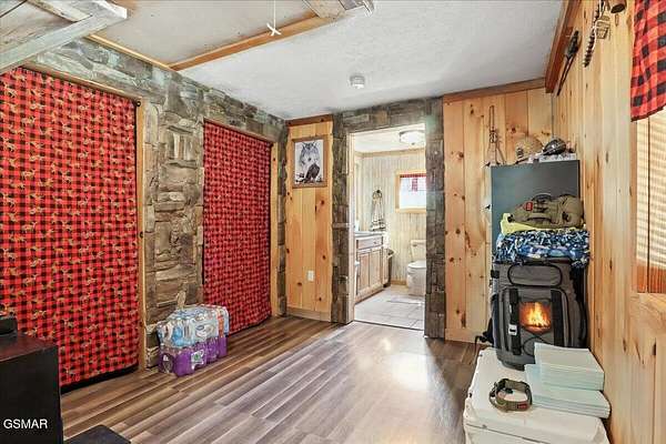 Est $1,532/moRustic home on +-7.62 Acres located at the base of English Mountain, incredible view, private, fruit trees, great get-away or full time residence, close to Sevierville/Newport/Dandridge, all appliances stay, lots of stone and wood interior, wood stove, central heat and air, covered front porch, detached shed/carport that is great for shop or storing vehicles and/or equipment.