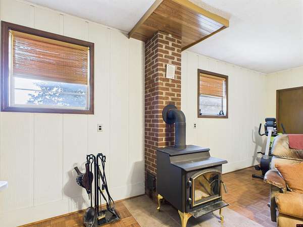 - Central, Electric, Fireplace(s), Wood, Wood Stove