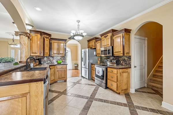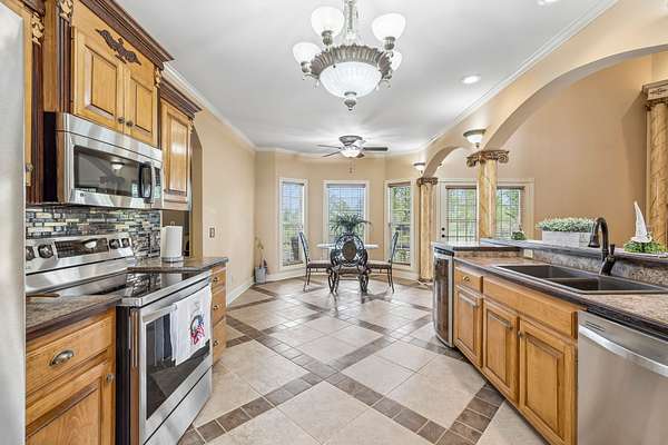 - Built-In Electric Oven, Dishwasher, Disposal, Electric Range, Microwave, Stainless Steel Appliance(s)