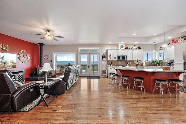 Prepare to be impressed by this exceptional 5+ acre view property tucked away in a private setting above Agate Lake with breathtaking panoramic views of the lake, Mt. Mcloughlin & the Cascade Mts. This impressive custom built two story, 3,688 SF home offers multi-generational luxury living. The main level boasts an open floor plan with gorgeous touches throughout, custom gourmet kitchen, large great room, huge master suite, 2 guest bedrooms & guest bath. The lower level has a 274 sf stg room + mud room/Pantry, a beautiful 1,018 SF guest unit with it's own kitchenette, bath, 2 guest bedrooms, separate laundry area & its own private patio . 2 car attached garage, 1,200 SF heated shop w/full bath & RV hook-ups. Large decks to take in the stunning sunsets, stone patio w/Fire Pit. All this & a complete solar power system & wired for stand-by generator. There's so much more to see here! See attached Home & Property Amenities List. Call LA to schedule a showing to view this amazing property.