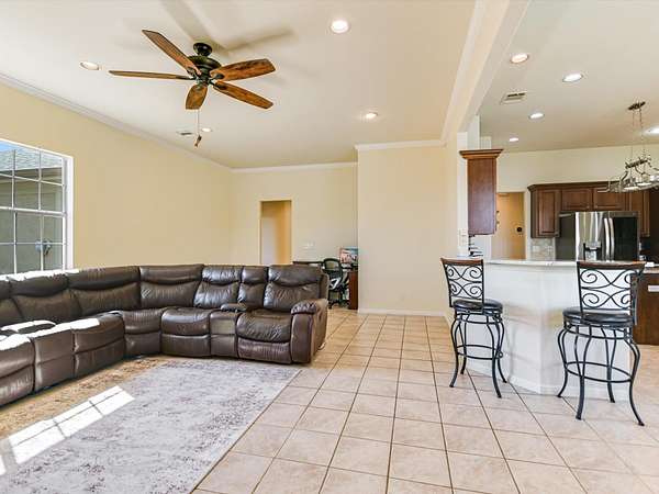 - Breakfast Bar, Ceiling Fan(s), Ceiling-High, Coffered Ceiling(s), Crown Molding, Entrance Foyer, Granite Counters, In-Law Floorplan, Multiple Dining Areas, Multiple Living Areas, No Interior Steps, Pantry, Primary Bedroom On Main, Recessed Lighting, Walk-In Closet(s), Wired For Sound