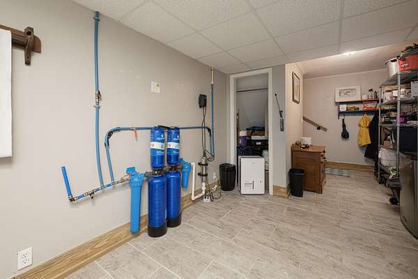 Public water plus two wells (one with updated pump wiring, bladder tank, and well house; one condition unknown).