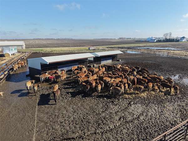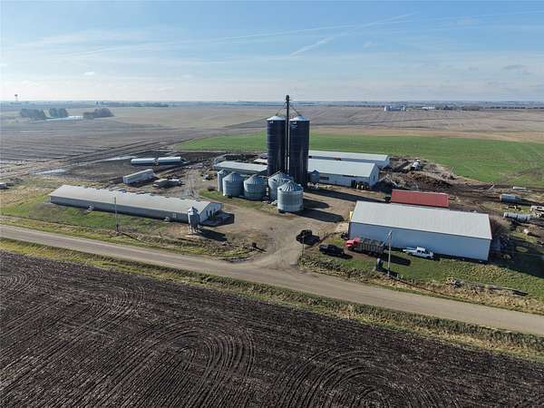 Situated along the Marshall and Story County line, this 111.27-acre turnkey operation is a premier find for cattle and swine producers. The farm includes +/-100 acres of systematically tiled ground with an elite CSR2 of 85. The livestock facilities are designed for immediate production, featuring a 1,000-head cattle feedlot across six pens (four dirt lots) with pipe fencing, new feed bunks, and automatic waterers. Swine production is anchored by a 40'x200' wean-to-finish barn with an 8-foot pit, recently upgraded with $125,000 in new slats and feeding systems. The pit provides enough manure to fertilize the entire farm annually. Housing includes a 50'x150' North shed and a 40'x150' South shed, both with concrete floors for easy cleaning. The South shed features new metal installed post-derecho. A 32'x92' Cargill building adds six individual pens for sorting. Storage is extensive, featuring 40,000 bu of dry grain storage and two 35,000 bu blue silos (East silo has a new floor/auger). Feed management is supported by two 1,200-ton concrete bunkers and a 3,000-ton feed bunker. Support buildings include a 60'x100' machine shed and a 40'x50' heated shop with a boiler system. The property offers immediate possession with open farming rights for 2026. Machinery is sold separately, but the seller is open to negotiations for a turnkey transition and will assist with management during the initial months to ensure a seamless handoff.