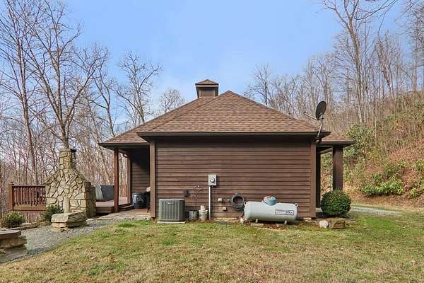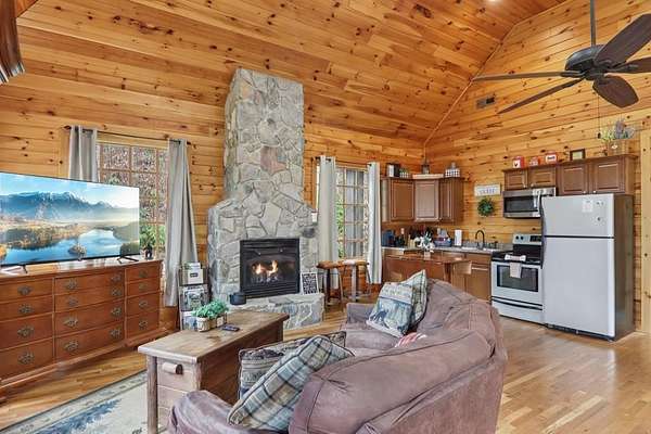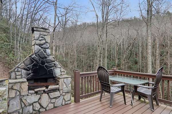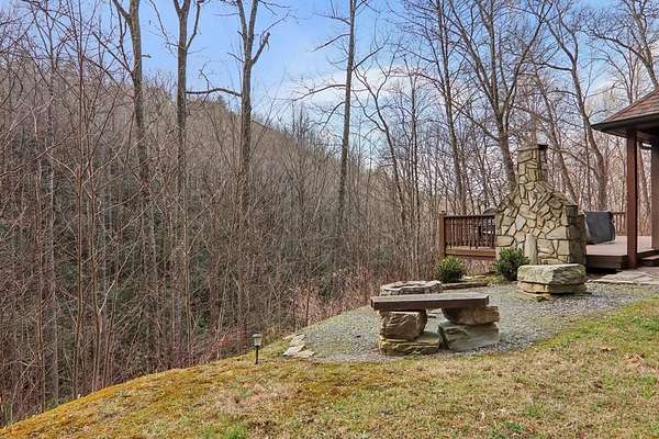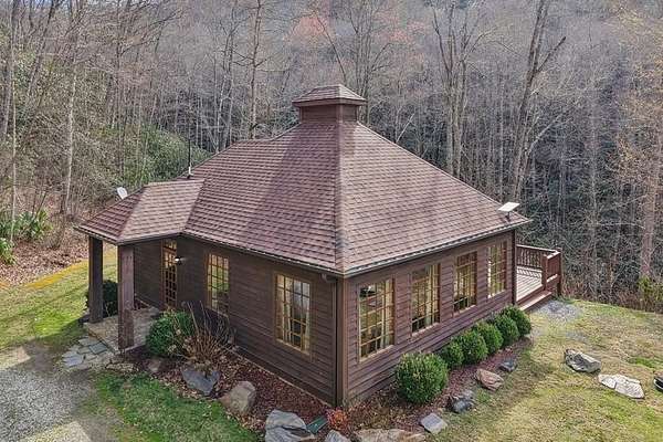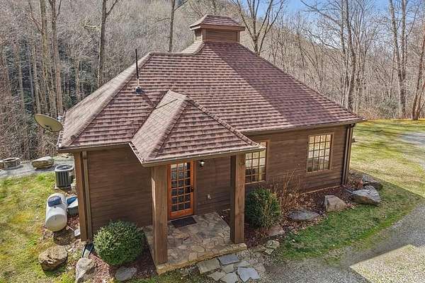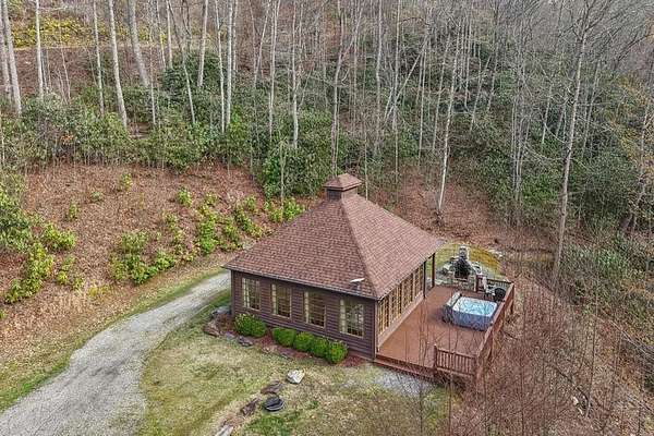 Tucked away on 2.43 private acres in the Alarka Highlands community, the ALARKA HIGHLANDS BUNGALOW offers a rare mountain setting with the soothing sounds of a rushing creek & a private path leading to your OWN SECLUDED WATERFALL. The spacious deck is the perfect place to relax with a fireplace for gatherings & a perfectly placed hot tub for a spa-like escape beneath the trees. A nearby firepit is just off the deck for cozy evenings under the stars. The home features a bright open studio-style layout where the kitchen, living area & sleeping space flow together in one inviting room. Large picture windows fill the space with natural light & frame the surrounding woods, while a stone fireplace anchors the living area with warmth & rustic charm. Alarka Highlands offers a community pavilion & tennis courts for owners to enjoy. Offered fully furnished & turnkey & already set up as a STR. It's about 25 miles from the entrance to Great Smoky Mountains Nat'l Park & the charming shops and eateries of Bryson City. This is the first home inside of the community with a paved road to the door. Alarka Highlands Bungalow is the affordable Smoky Mountain investment you've been waiting for.