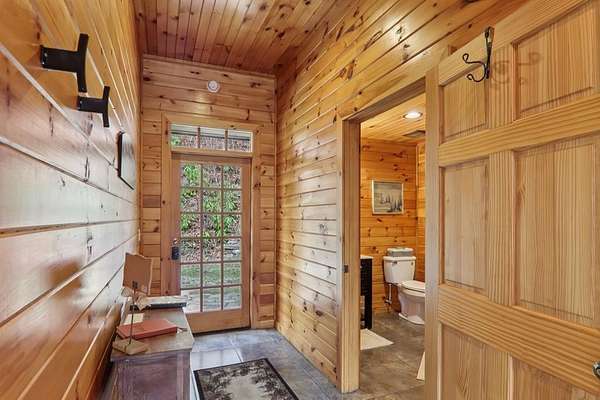 From downtown Bryson City, take US 19S. Turn left/south onto Alarka Rd and continue for about 8 miles. Then, turn left onto Unahala Creek and left again onto Alarka Highlands Rd. The home is past the clubhouse on the right.