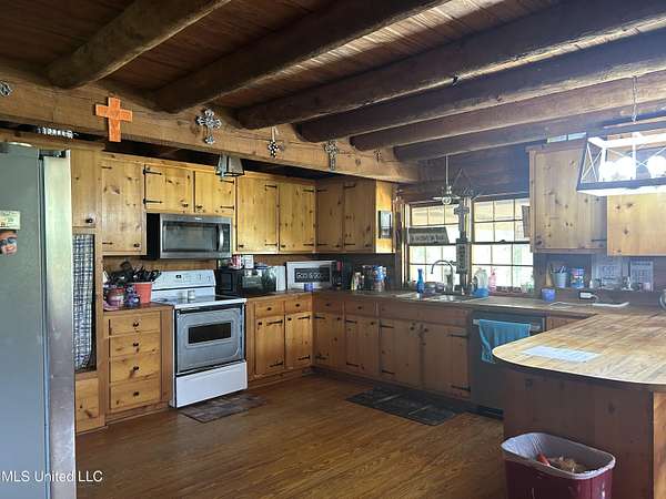 Est $1,352/moTranquil, country living within minutes of local amenities. This 3 bedroom 2 bathroom log home is tucked away not far from I 55 on an asphalt road. Features include: a log exterior made from White Arkansas Pine, Pine hardwood floors, 2 special purpose rooms, central heat and air, patio, front and back porches, deck off the primary sweet, metal roof, and breathtaking views from every angle. The property is situated on approximately 1.8 acres and includes a storage shed with porch, detached carport, and large basement. Call today to view this fabulous find.