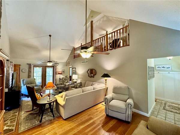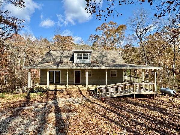 Nestled on 22+ private acres, this 1985 custom-built home has been lovingly maintained by its original owner and has never been on the market. With approximately 1,900+ square feet of living space, the property offers a rare blend of privacy, natural beauty, and enduring character. Surrounded by a forest of predominantly mature hardwood trees, the home overlooks a peaceful stream and is perfectly positioned to take in the tranquil setting. A partially screened wraparound porch spans three sides of the exterior, providing multiple vantage points to enjoy the sights and sounds of nature. Rustic siding complements the wooded surroundings, creating a timeless, cabin-inspired aesthetic. Inside, oak hardwood floors bring warmth and continuity throughout the main living areas. Three sets of French doors and two bay windows flood the home with natural light while seamlessly connecting indoor spaces to the outdoors. The primary suite features a spa-like bath with a striking floating tub. A tankless water heater and an architectural shingle roof are recent updates. The full basement includes a two-car drive-under garage and offers generous storage or future expansion potential. Thoughtfully designed and cared for, this one-owner property presents a truly unique opportunity to own a secluded retreat with acreage, water views, and classic craftsmanship rarely found on today's market.