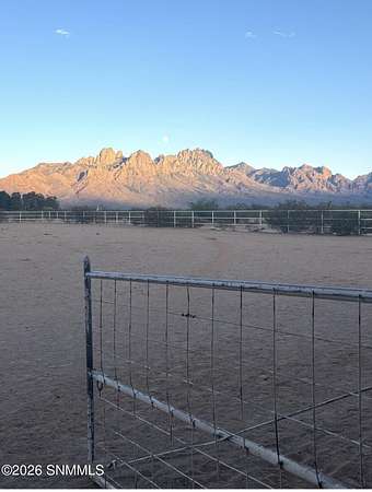 Breathtaking views await you at this nearly 6 acre Horse property close to the base of the Organ Mountains. Perfect for building your new home or setting a manufactured home; both single and double wides are allowed. Pipe corral Arena features a Steel Metal building with two 20x20 covered stalls, a tack room that is pre wired and hay barn. The water and electric are readily available. Buyer to verify cost to connect. The arena has two gates, one in the front and one on the south side for easy access. Three horses are allowed per acre and the zoning is D1 (low density residential). Property is approximately 5 miles from city limits and borders land owned by the State of NM providing peace and quiet. Amazing sunrises over the Organ Mountains and relaxing sunsets. This is a special property must see to appreciate! Call listing broker for your tour today!!